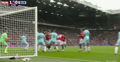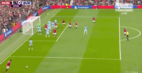 第27分钟,布鲁诺-费尔南德斯开出左侧任意球,卡塞米罗头球冲顶,球击中横梁之后反弹,打在库伦的身上反弹,杜布拉夫卡单手将球捞出,但主裁判示意球整体过线,曼联幸运地取得了领先。