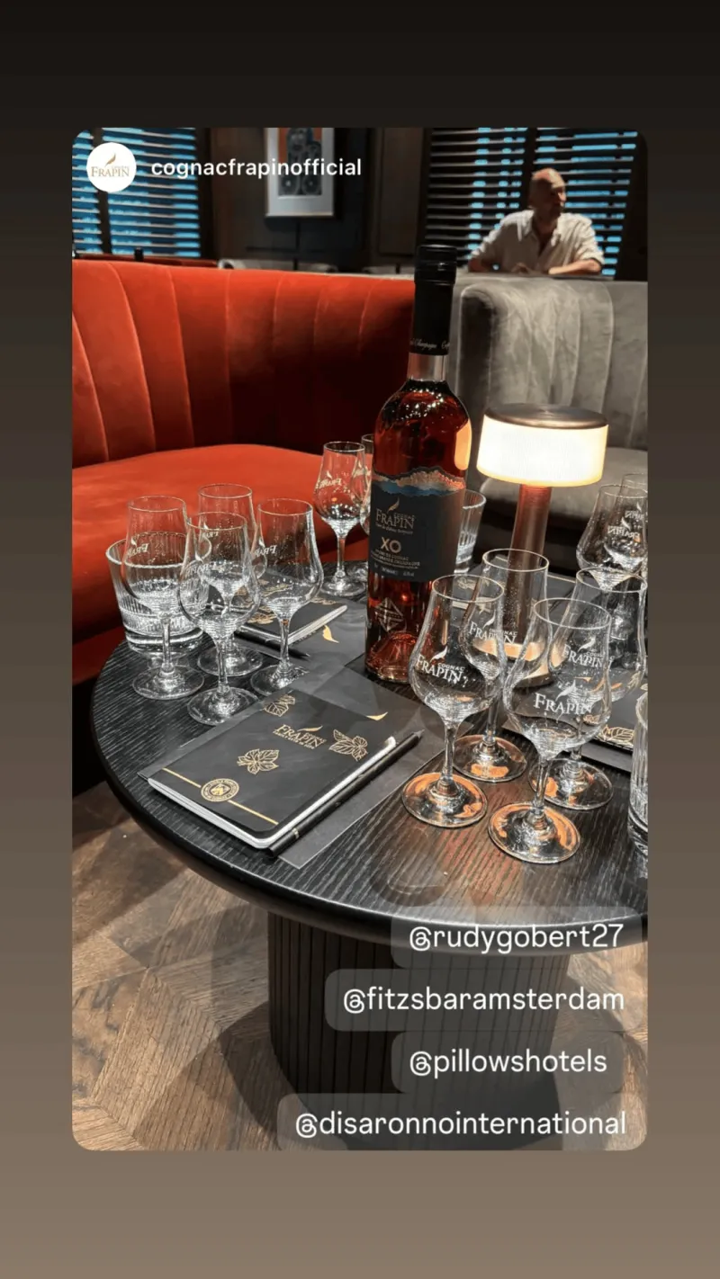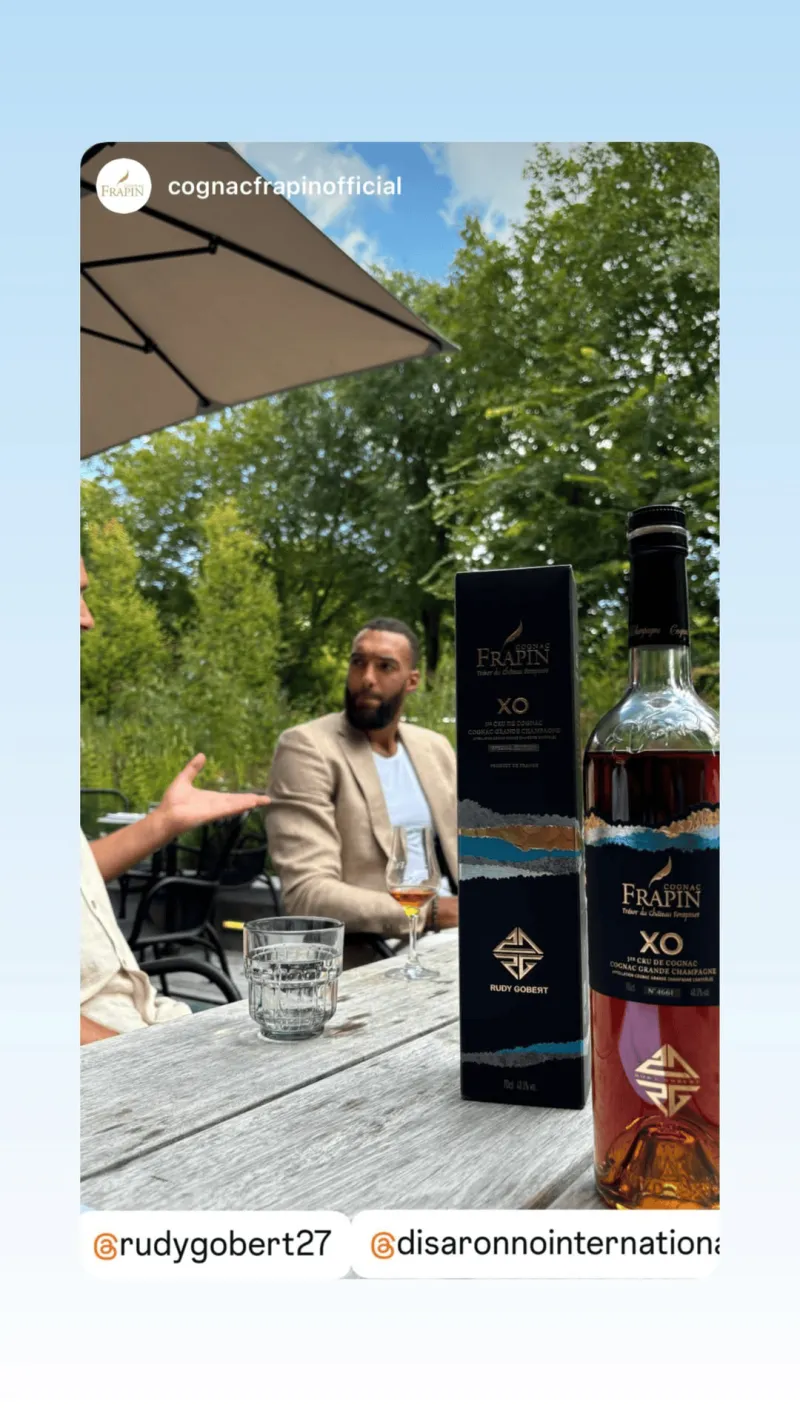 虎扑09月02日讯 森林狼中锋鲁迪-戈贝尔更新ins,晒出了自己所代言的法拉宾干邑白兰地酒(Frapin Cognac)的照片。