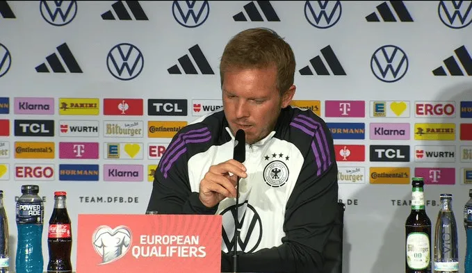 虎扑09月06日讯 德国国家队主教练纳格尔斯曼出席对阵北爱尔兰的生死战赛前发布会。